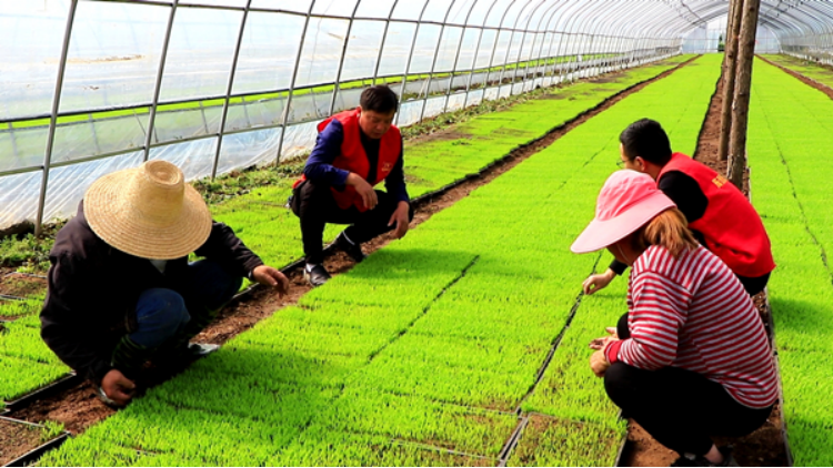 常德沁春水稻种植专业合作社是陈家嘴镇集中育秧、机插机抛等社会化服务作业点之一,建有育秧大棚20个,可为1600亩的水稻大田提供充足秧苗。一大早,镇、村两级党员干部走进合作社的育秧大棚,查看秧苗长势,询问生产困难,耐心叮嘱秧苗管护的相关注意事项。