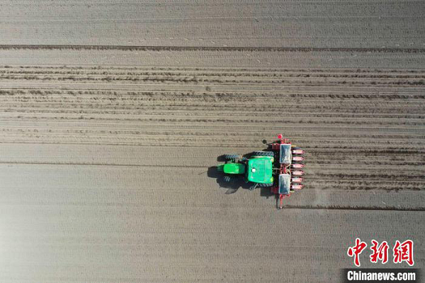 中新网乌鲁木齐4月11日电(潘琦 张文庭 曹小娟)春分过后,天气渐暖,新疆新源县各乡镇农民抢抓农时,全力投入到春耕生产中。连日来,农机手们驾驶着装有北斗导航系统的播种机,将甜菜种子和肥料均匀播撒在土壤里。