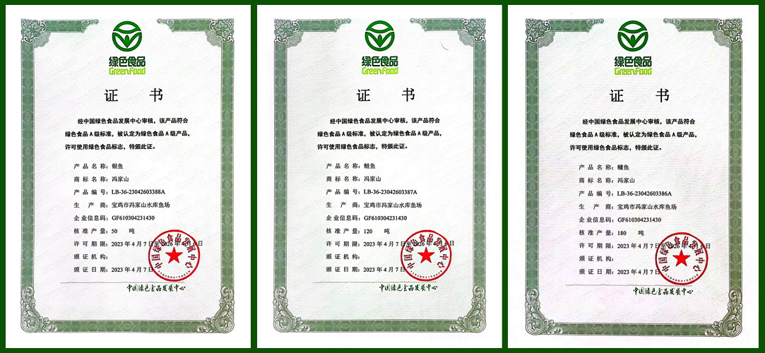 4月14日,我省宝鸡市冯家山水库鱼场的鲢鱼、鳙鱼和银鱼三个产品通过中国绿色食品发展中心认证,获得绿色食品标志使用权,是全省首家通过绿色食品认证的水产品。认证总产量为350吨,其中鲢鱼120吨、鳙鱼180吨、银鱼50吨。