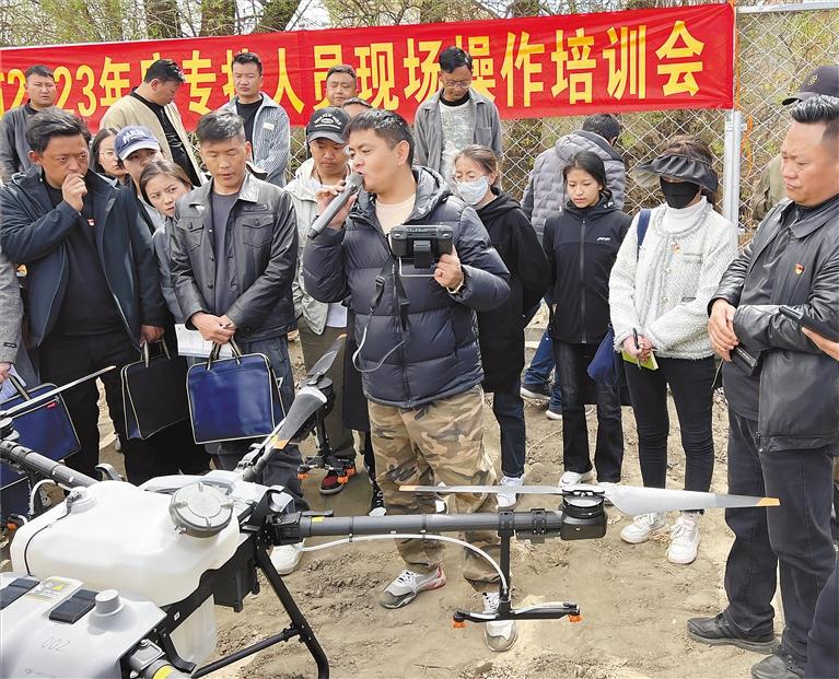 图为授课老师在讲解演示植保无人机结构特点和操作要点。记者 扎西顿珠 汪纯 摄
