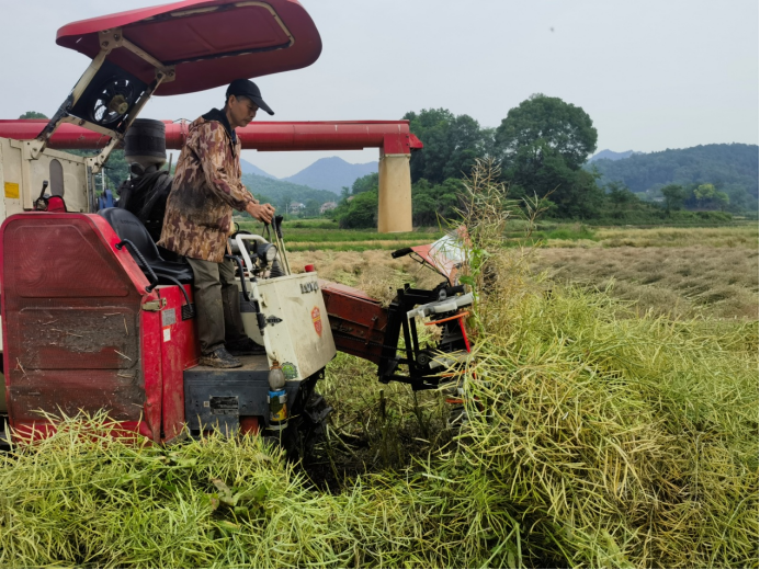 5月8日,石门县军档粮油专业合作社负责人谢敏在370亩稻油轮作的油菜田里通过二段收获法,在提升机收减损率的同时,提早收割油菜后栽种上了早稻秧,率先在全县推行“稻稻油”三熟制,进一步提升了土地利用率。