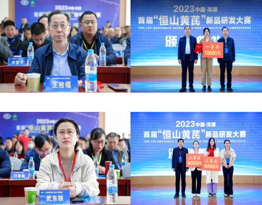 恒山黄芪新品研发大赛决赛上黄芪酵素、黄芪茶、黄芪啤酒、黄芪洗护套装、黄芪粗粮饼干等16款黄芪创新产品参与角逐。经国内行业专家严格评选,黄芪亮肤旅行装获得一等奖,元芪植物力等渗益生菌茶和谷芪多多全谷代餐奶昔获得二等奖。省园艺中心主任王拴福、省乡村产业中心主任武东轶参加活动并为获奖团队颁奖。