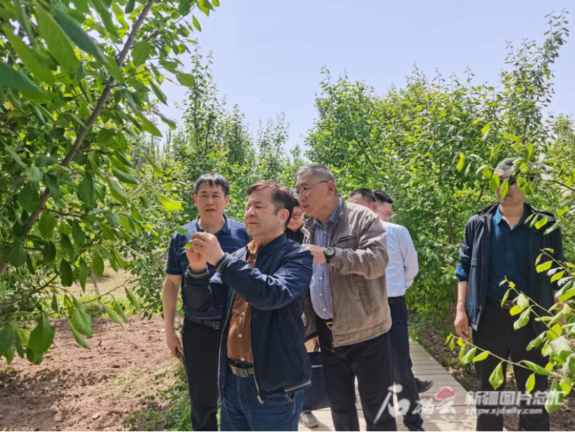 5月11日,新疆农业科学院调研组专家深入伽师县新梅示范园调研新梅长势情况。杨波摄。