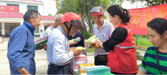 图为:祁阳市科协志愿服务小分队正在向村民们开展科普活动