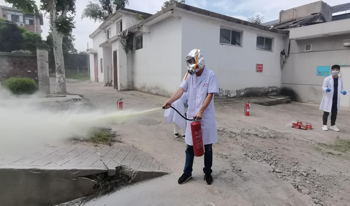 演练在危化品库房前进行,模拟因危化品使用不当引起的火情。安全生产指导老师示范讲解了过滤式消防自救呼吸器的佩戴方式、干粉和二氧化碳灭火器等消防器材的使用技巧和注意事项,传授了“提、拔、握、压”四字灭火操作口诀,并带领全体工作人员进行了灭火操作演练,整个演练过程井然有序,操作准确规范。通过消防安全演练,工作人员增强了消防安全意识,掌握了火灾逃生和消防器械使用的常识和技能,提高了应对突发事件的应急处置能力,达到了预期效果。