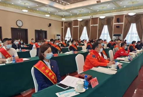 5月24日,自治区“八大产业集群”重点工程项目劳动和技能竞赛启动仪式暨表彰大会在乌鲁木齐市召开。图为大会现场。