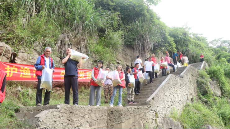 随后,鲁开发和学生们、当地群众一道,来到列夕村码头,在技术人员的指导下,严格按照放流技术规程,将一袋袋活蹦乱跳的鱼苗小心翼翼地放入酉水河域,河面掀起阵阵水花,鱼儿欢快地游入河中,为酉水河域再添生机与活力。