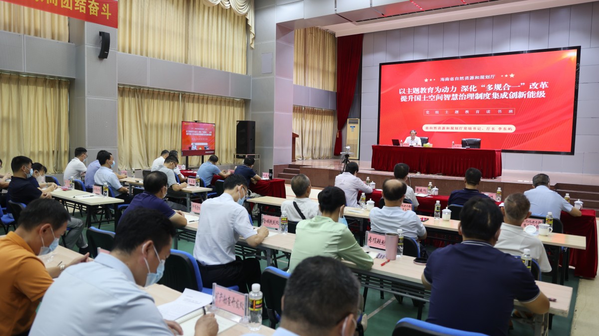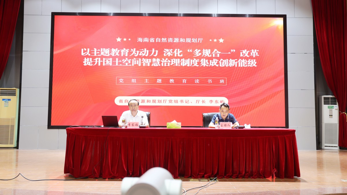 根据海南省自然资源和规划厅党组主题教育工作方案安排,6月14日,厅党组书记、厅长李东屿以《以主题教育为动力 深化“多规合一”改革 提升国土空间智慧治理制度集成创新能级》为题,向全省自然资源和规划系统近600名党员干部职工讲授专题党课。厅党组成员、副厅长程春满主持本次党课。