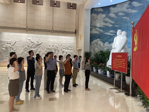 在周恩来邓颖超雕像前,党员们面向党旗,重温入党誓词,感悟初心使命、汲取奋进力量。展厅内,一幅幅展现革命岁月的画面,一封封满怀家国豪情的书信,一件件镌刻崇高品德的展品,给大家留下深刻印象。伟人对党和人民的无限忠诚,鞠躬尽瘁的革命精神、不惧艰险的革命心路和艰苦朴素的优秀作风,感动了每一位党员。