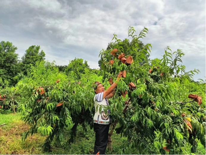 脱贫户贺文平虽然种植了2亩黄桃,但见这里多年没有收成,心灰意冷,他不想干出力不讨好的事,打算放任不管。在帮扶责任人、村党支部书记朱泽龙督促下,剪枝、打药、治虫等才一步一步地跟着走,收获很是满意。他说:“我原来对种黄桃没有信心,担心桃子多了卖不出去,没用心去培管。后来搭帮县科技特派员的技术指导,有村帮扶责任人的督促,跟上培管节奏,一亩多地黄桃卖了3000多元钱,增强了我种黄桃的信心。今年我的认识跟上了,早早就跟上了村里培管的步伐,按时要求修剪枝条、打药防治病虫、施肥培管,今年预计收入突破万元。”