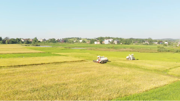 在八宝镇四木塘村,一台收割机正在田间收割早稻。在刚收完早稻的田里,另一台旋耕机正在翻耕,成群的白鹭和麻雀伴随着农机,在田野里飞翔、觅食、嬉戏,构成了一幅人与自然和谐共生的生态画卷。八宝镇四木塘村的种粮大户文建权今年早稻种了300多亩,7月10日他就开始收割早稻,在村里的农机服务下,文建权第二天就开始翻田插秧,目前已经抢收了250亩了,晚稻插了200亩。