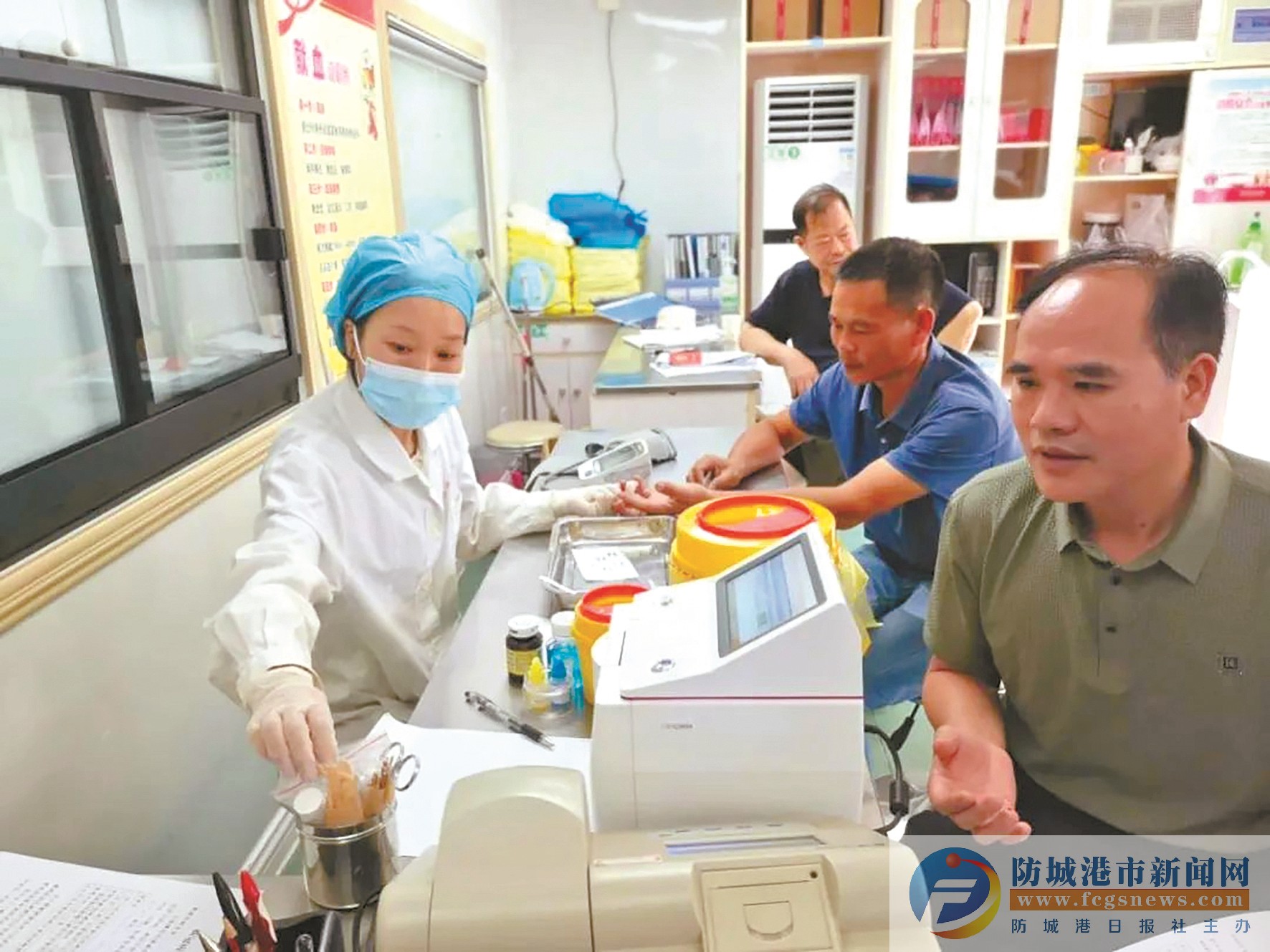 在献血现场,参加献血的退役军人、党员干部在医护人员的指导下,填表、化验、抽血……井然有序地完成献血的所有流程。