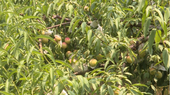 果农们通过精挑细选,将优质的桃子套上网袋,再分装进纸盒里,通过物流进行配送销售。记者了解到,今年的青桃较之往年,在成熟的过程中,因天气炎热吸收的热量更多,甜度也随之大幅提升,口感也比往年好。今年基地的产量将达10万公斤,每公斤卖价30元,收入可达300多万元。