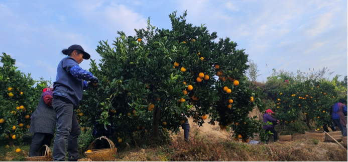 丁春从把村民抛荒的冰糖橙园流转过来以后,采取高接换种锦蜜和锦红优质品种,随后进行一系列的提质改良措施,建成高产、高质、高效的生态橙园,带动、指导示范周边有劳动力的种植户管理好橘园。