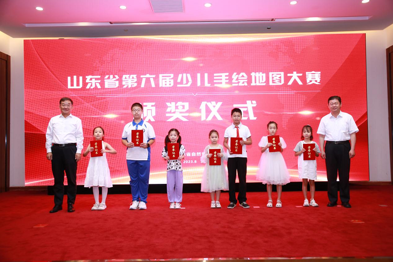 山东省自然资源厅机关相关处室和事业单位负责人,省地质矿产局、省煤田地质局、省测绘地理信息行业协会、省测绘学会和济南市自然资源和规划局部分代表,少儿手绘地图大赛获奖代表、获得特别贡献奖单位和“地理空间数据十大应用创新案例”获选单位,以及国家和省有关新闻媒体的记者朋友共计100余人出席活动。