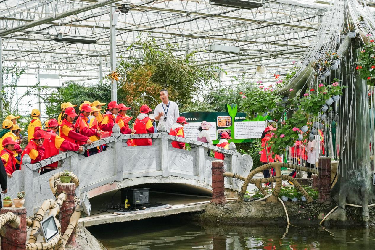 研学活动正式开始前,研学安全员老师根据《中小学生研学安全行为指南》对学生们进行了统一的安全培训,通过提问交流以及案例讲解的形式,加深同学们的研学安全的了解及规范。现场教学时,参观了无土栽培研学点、四季花开研学点、热带果树研学点、藏药文化研学点、设施农业研学点、现代农业科普研学点、科技展馆研学点,通过研学讲解员的解说及同学们的积极问答,进一步让同学们学到了更加丰富的农耕知识。