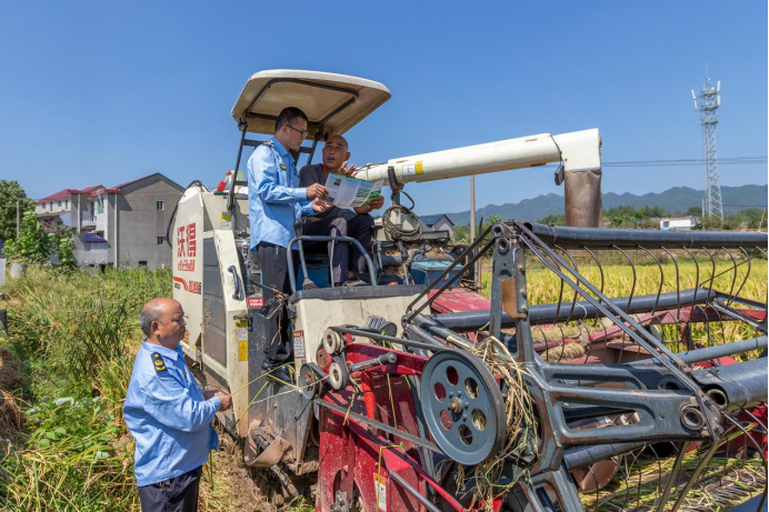 9月5日,泸溪县农业农村局农业综合行政执法人员深入到浦市镇等乡镇农业生产第一线,对跨区水稻收割作业的联合收割机开展安全生产执法检查。