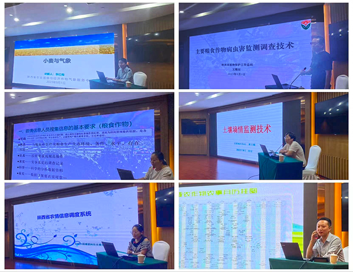 省气象局,省农技站、植保站、耕地环保站,北京中园科技有限公司,厅种植业管理处农情信息员分别围绕小麦与气象、主要粮食作物病虫害监测调查技术、苗情信息采集整理和分析、土壤墒情监测与报告撰写、农情调度系统使用介绍、农情调度基础知识和规范方面进行了授课培训。