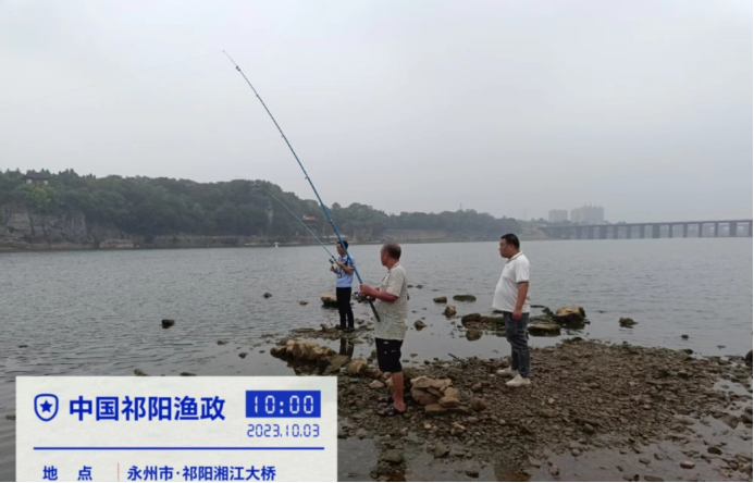 “您好,我们是市农业综合行政执法大队,这是我们的执法证,请您把钓鱼竿提起来让我们看看。”这是10月3日,祁阳市农业农村局农业综合执法大队在湘江二桥段巡河检查时发生的情形。