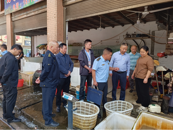 督查组检查桃江县马迹塘镇的一处水产品交易市场