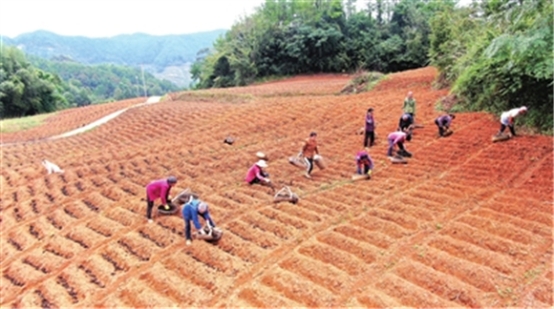 蟠龙镇老林村藠头基地,村民在施底肥。记者 谢清城 郑君兴 供图