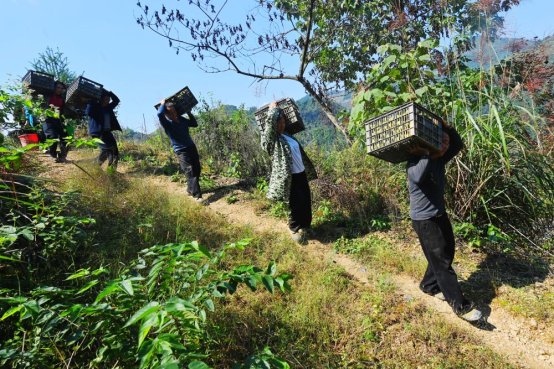 ▲10月14日,酉阳县可大乡吴家村,村民正在搬运刚采摘的罗汉果。特约摄影 陈碧生