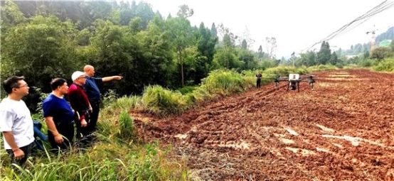 近日上午,在铜梁区少云镇少云村5组,区老科协专家到铜梁区金灿灿粮食种植专业合作社,走进田间地头指导油菜飞播。