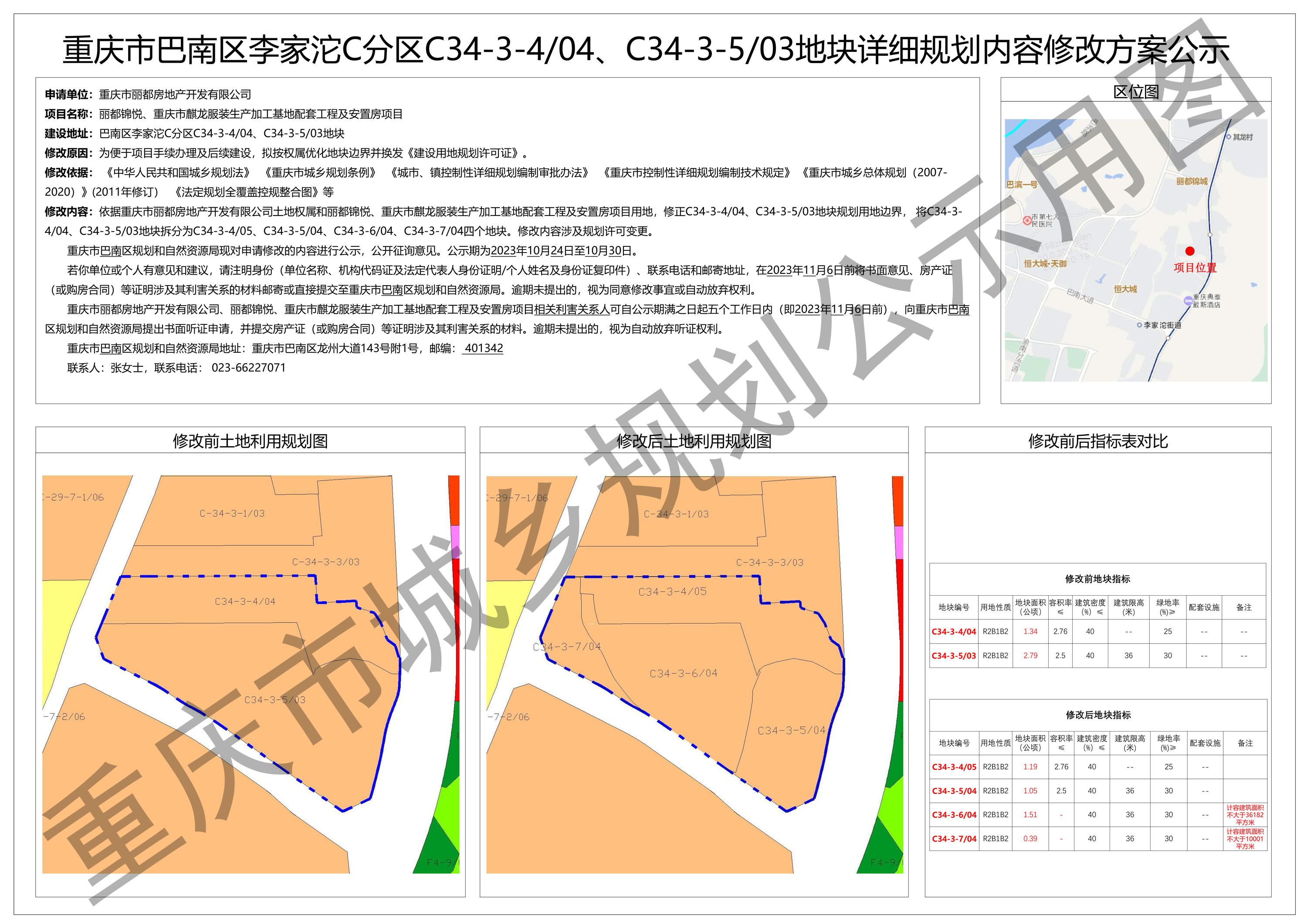 重庆市巴南区李家沱C分区C34-3-4/04、C34-3-5/03地块详细规划内容修改方案公示