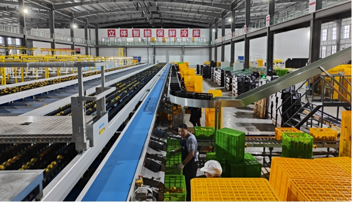 湘佳橘友农业有限公司投资1.5亿元,新建占地80亩柑橘智能优选加工厂,配置新西兰康备科6通道柑橘智能分选线2条,国产绿盟4通道称重带叶果分选线1条。实现柑橘果径、重量、颜色、瑕疵、糖度等内外部品质的精准分级,日处理能力500吨,月处理1.5万吨,配套建设4200吨储能智能冷库,年处理果蔬能力10万吨。建立果品质量企业标准,对果品进行多项指标的精细化分类,对终端渠道进行分层级产品供应。充分利用集团公司全国商超、新零售等渠道资源将产品供应至多家大型商超渠道,先后在华东、华北、东北等区域建立了多个石门柑橘合作直营窗口。已获得柑橘果品出口资质,并积极拓展出口业务。