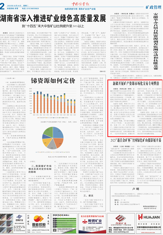 (特约记者 何伟) 新疆自然资源厅办公室近日印发《关于开展矿产资源市场化交易专项整治工作的通知》(以下简称《通知》)。按照自然资源部统一工作部署,打破地方保护和市场分割,进一步规范矿产资源市场交易秩序。