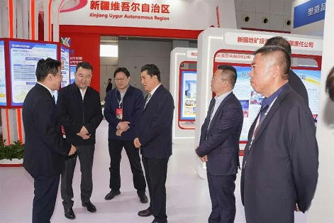 大会期间,中央政治局委员天津市委书记陈敏尔、自然资源部部长王广华、天津市市长张工等领导亲临我区展位参观,厅党组副书记、厅长木合塔尔•卡里木别克厅长代表新疆自然资源厅做汇报,厅党组成员、副厅长于建宁陪同。