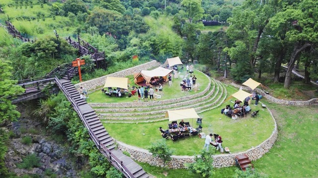 立足萩芦“五彩”资源优势,“萩山来信”文旅项目通过整合崇福、南下、梅洋等重点旅游村资源,以“镇企业+村集体+第三方”的运营模式,推出崇福露营基地、桃源境、南坛温泉等5个文旅项目,不断丰富业态,持续发展乡村旅游经济,形成远近闻名的“网红”打卡地。