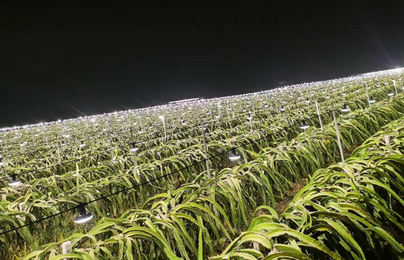 据悉,苏圩镇镇宁村、保卫村、仁德村等火龙果种植基地通过引进“催花补光”技术,累计安装补光灯400余亩8万余盏,每天补光约5小时,每年可增加摘果3次以上,有效提高了经济效益,实现了增产增收。