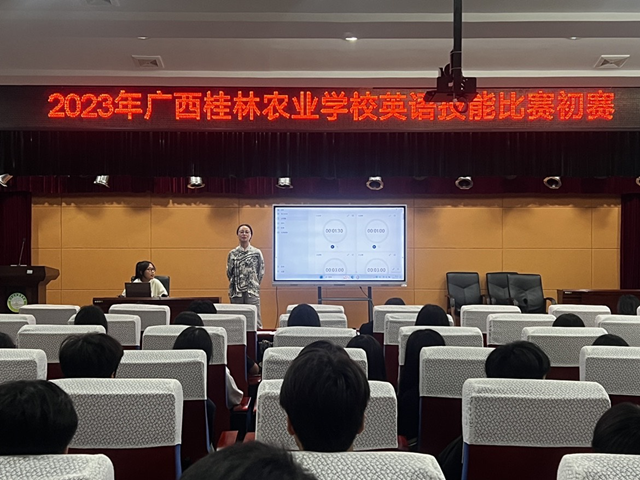 为了提高职校学生的日常英语、职业英语应用水平,增强职业英语素养,树立中华文化意识和自信,发展跨文化交际能力。11月1日晚7点,广西桂林农业学校2023年英语技能比赛-预赛暨“2023年体育技能文化节”技能比赛周在学校综合楼3楼道德讲堂、综合楼5楼多功能报告厅举行。