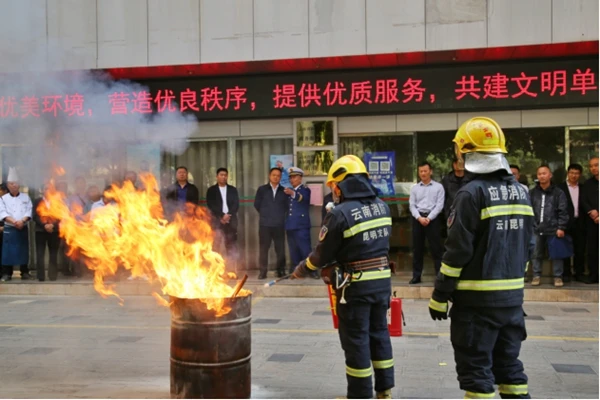讲座结束后,在昆明市消防救援支队盘龙大队的指导下组织了应急疏散演练和灭火演练,通过实际演练及操作,参加人员进一步掌握了灭火毯和灭火器等器材的使用方法及逃生技能,切实提升了自防自救能力。