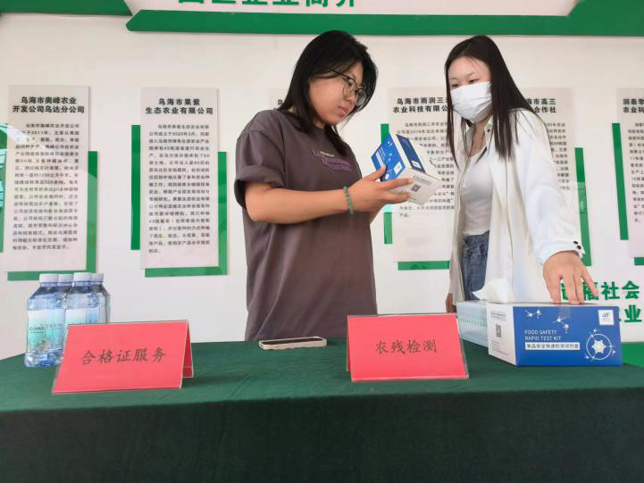 乌海市在三个区均设立了农产品质量安全监管服务站点,每个站点依据当地农产品种类,可能存在的农药残留风险,配备金体胶速测试剂,按照“用什么,检什么”的工作导向,监管员、协管员有针对性开展农兽药残留金体胶速测筛查。服务站点设有开具合格证指导台,随时指导生产主体如何开具承诺达标合格证。