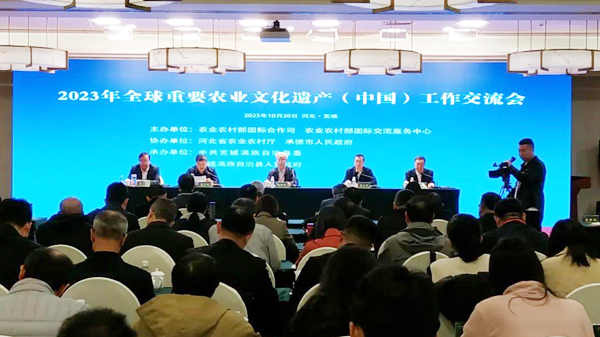 10月20日,由农业农村部国际合作司和国际交流服务中心主办,河北省农业农村厅、承德市人民政府协办,宽城满族自治县委、县政府承办的“2023年全球重要农业文化遗产(中国)工作交流会”在河北省宽城满族自治县举行。会议旨在交流经验、分析形势、凝聚共识、明确任务,推动全球重要农业文化遗产事业迈上新台阶,服务乡村振兴和农业强国建设。农业农村部国际合作司一级巡视员倪洪兴、国际交流服务中心主任顾卫兵、副主任徐明,河北省农业农村厅二级巡视员宋双印,承德市政府副市长崔万峰及宽城满族自治县委书记张成等出席会议。来自全国20个省、自治区、直辖市的政府领导及相关高校、科研机构专家学者等140余人参加会议。