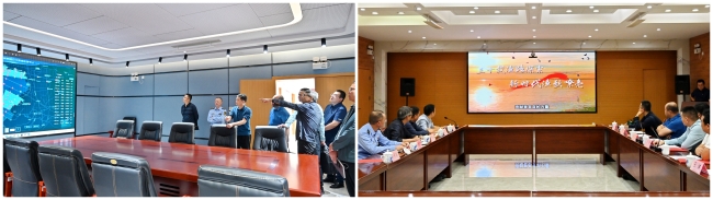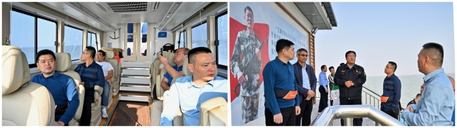 考察组一行乘坐执法指挥艇实地察看了滆湖5万亩净水控藻增殖渔业试验区,参观了渔政二大队“滆湖开山岛”和渔政指挥中心,观看了滆湖纪录短片《三十载渔路探索新时代渔歌嘹亮》和《大食物观下的滆湖粮仓》。渔管办分管领导和相关部门负责同志向考察组介绍了单位基本情况以及近年来在大水面生态渔业、社会放生管理、湖区网格化管理等方面的工作开展情况。