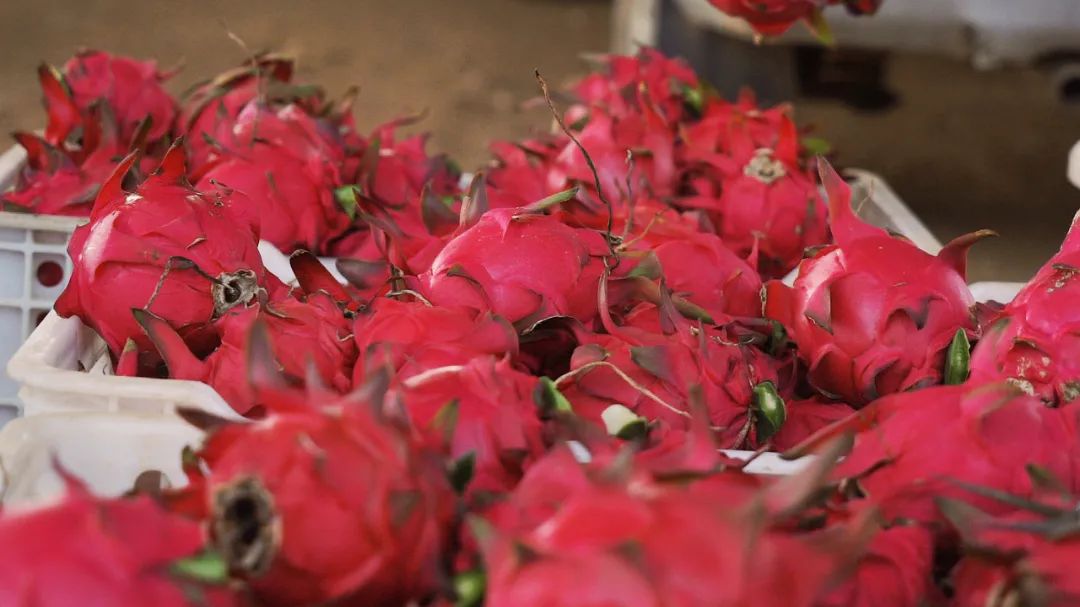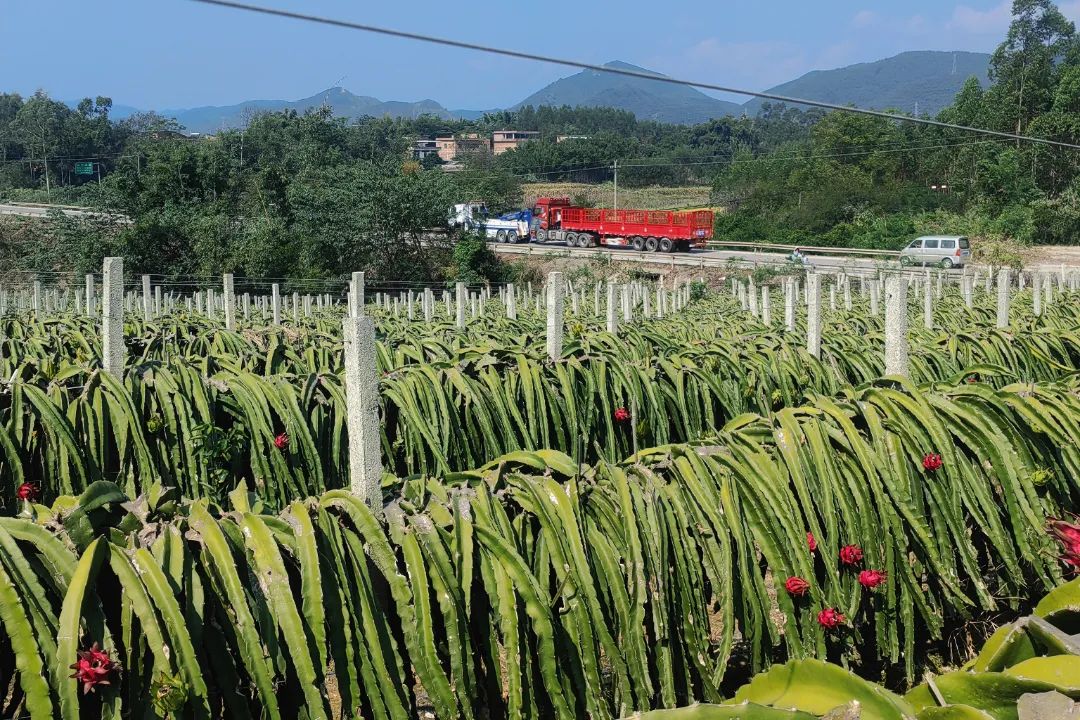 火龙果基地从今年7月初开始挂果,采摘期持续到春节前,预计今年将采摘13批次。该基地面积约120亩,每亩总产量约6000斤以上,主要销往华东、华南地区。基地种植的火龙果品种为“金都一号”红心火龙果,皮薄肉厚、色泽鲜艳、口感清甜,咬上一口,鲜红的汁水四溢,浓郁的果香在口中弥漫开来。因其富含丰富的花青素、膳食纤维可以起到抗氧化、促进肠道蠕动的作用,深受广大消费者的喜爱。