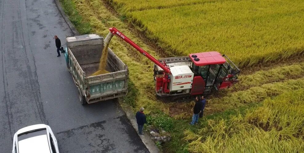近日,永福镇大苏村的晚稻迎来收获,阡陌交错的田野上,收割机轰隆作响,田间地头一派繁忙景象。