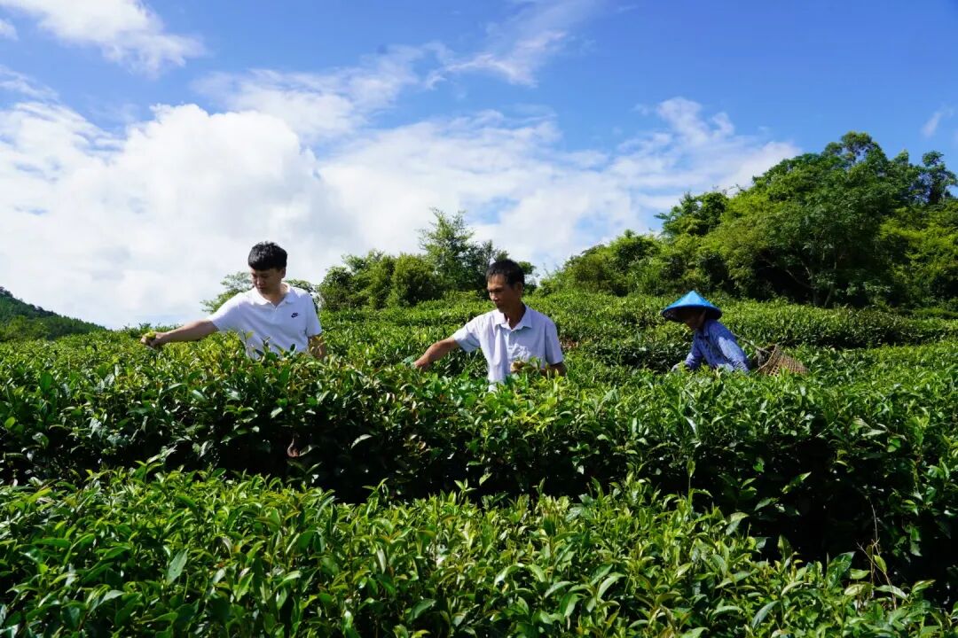 ▲农户正在采摘茶叶。
