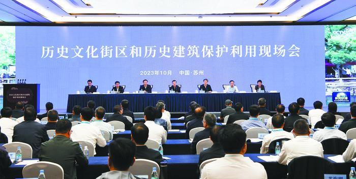 10月25日,住房城乡建设部在江苏省苏州市召开历史文化街区和历史建筑保护利用现场会。住房城乡建设部党组书记、部长倪虹出席会议并讲话,强调深入学习贯彻习近平文化思想,全面落实党中央、国务院决策部署,强化责任,狠下功夫,推动城乡建设中历史文化保护传承工作不断取得新成效。住房城乡建设部副部长秦海翔主持会议。江苏省人民政府副省长夏心旻致辞。