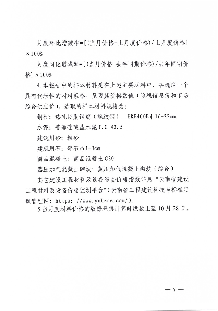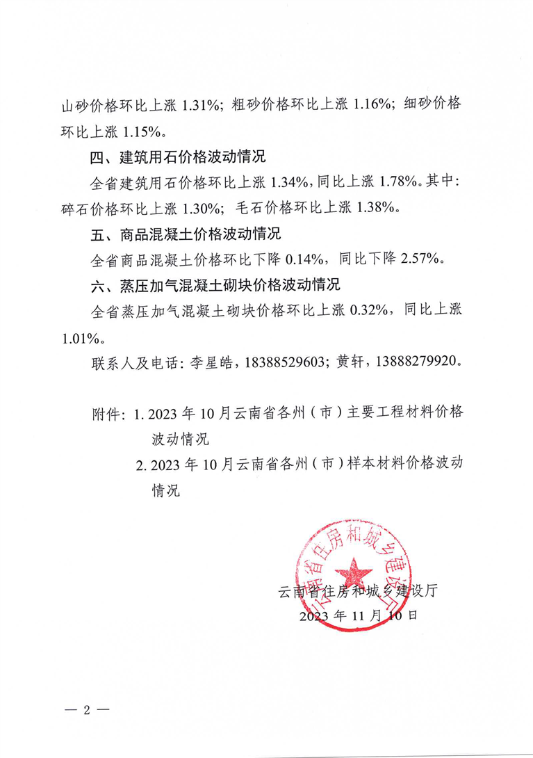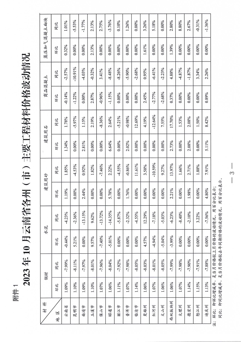 云南省住房和城乡建设厅关于2023年10月云南省主要工程材料价格波动情况的通报