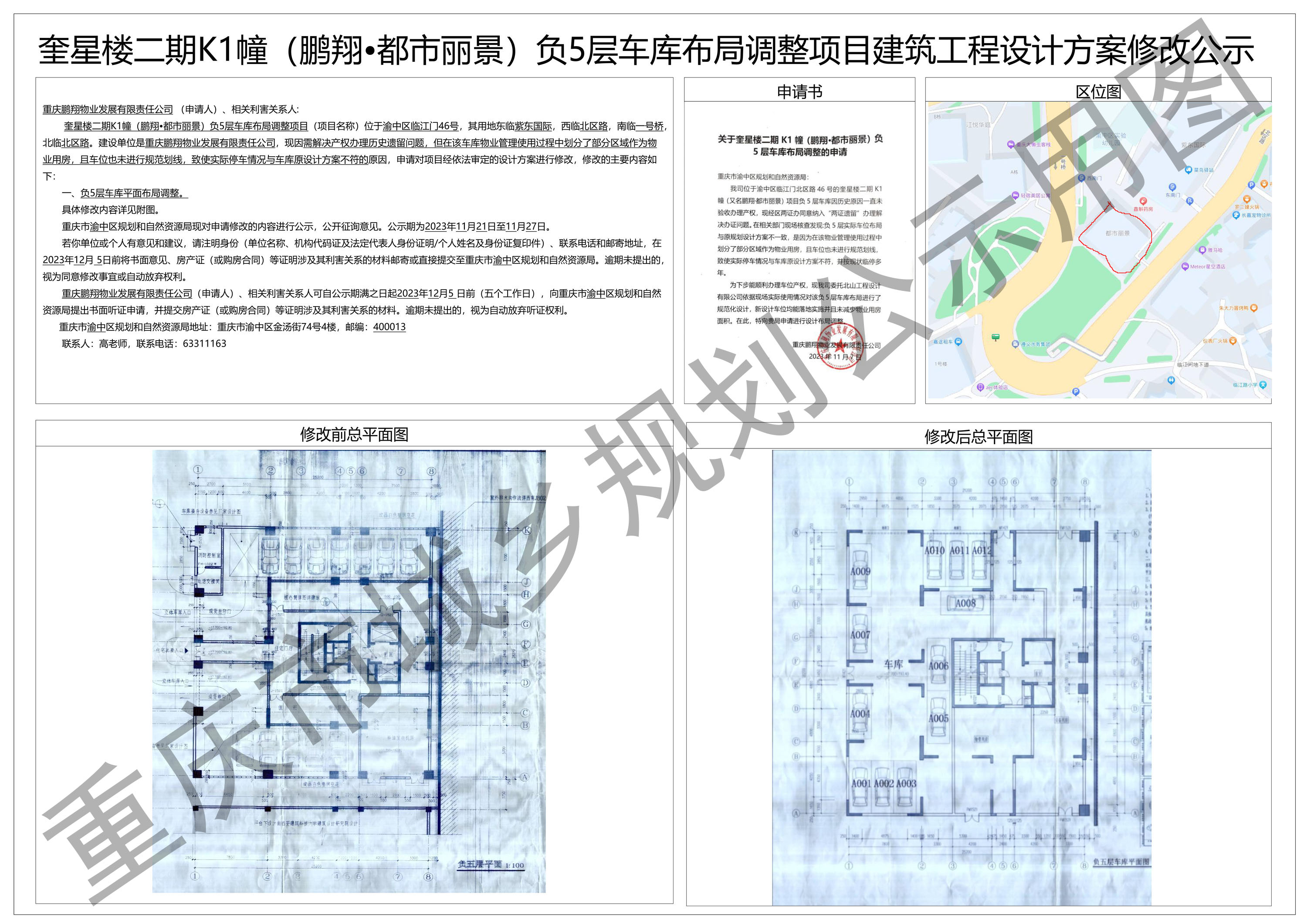 奎星楼二期K1幢(鹏翔•都市丽景)负5层车库布局调整项目建筑工程设计方案修改公示