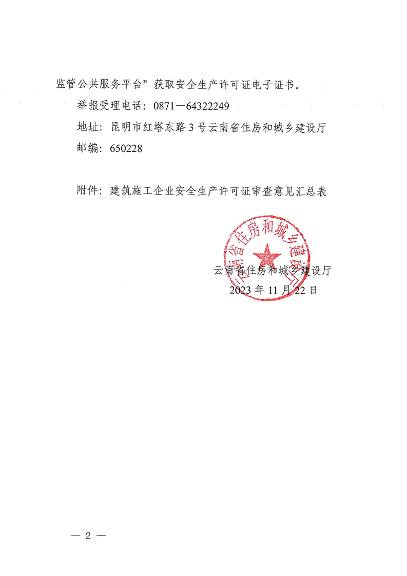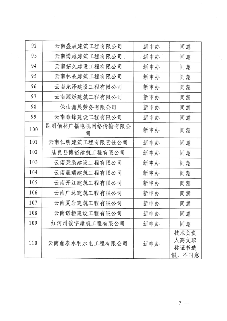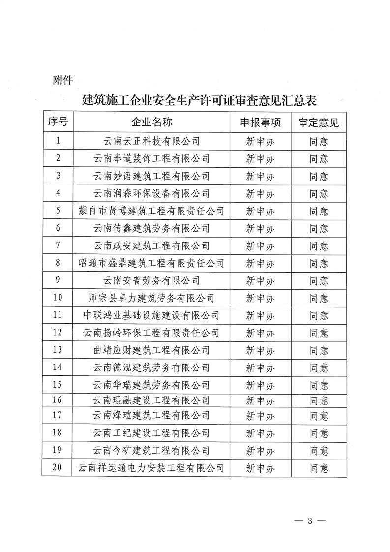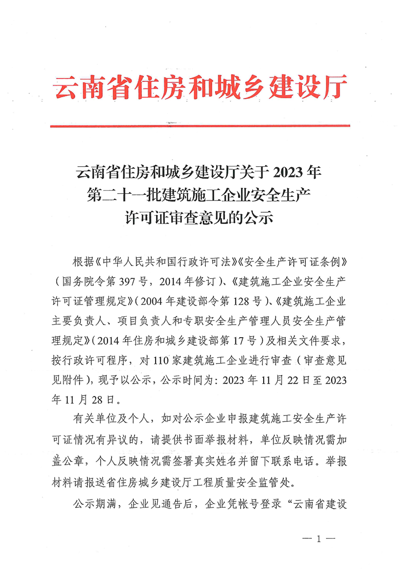 云南省住房和城乡建设厅关于2023年第二十一批建筑施工企业安全生产许可证审查意见的公示