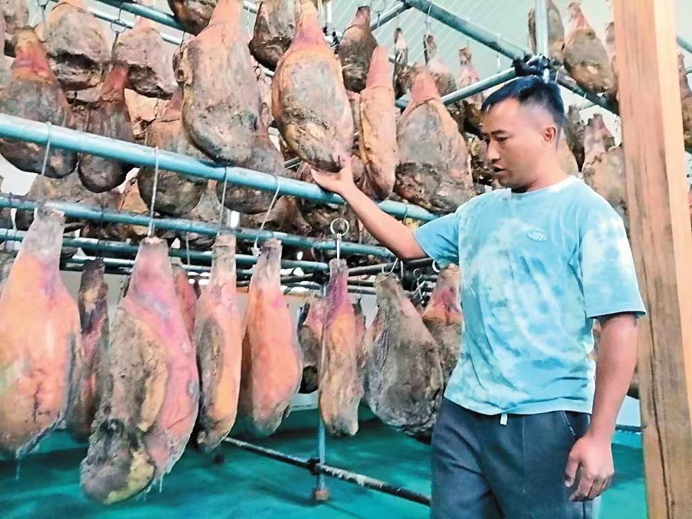 “火腿卖到了法国,特别受欢迎。我们的火腿冬季才加工,仅制作一年的销售量,始终坚持诚信第一、质量第一。”近日,保山市施甸县摆榔彝族布朗族乡鸡茨村党总支副书记杨世李在接受采访时说,2022年冬季,鸡茨村加工了7000只火腿,销售收入达35万多元,实现村集体收入12.58万元、分红4.98万元。今年10月,通过线上销售火腿1700只,目前加工的火腿数量已无法满足市场需求,今年计划加工1万只。
