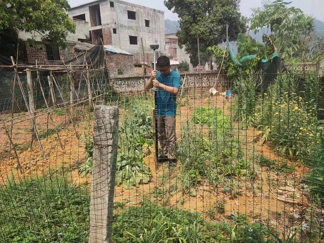 图为乡村建设管理中心工作人员使用RTK测量宅基地