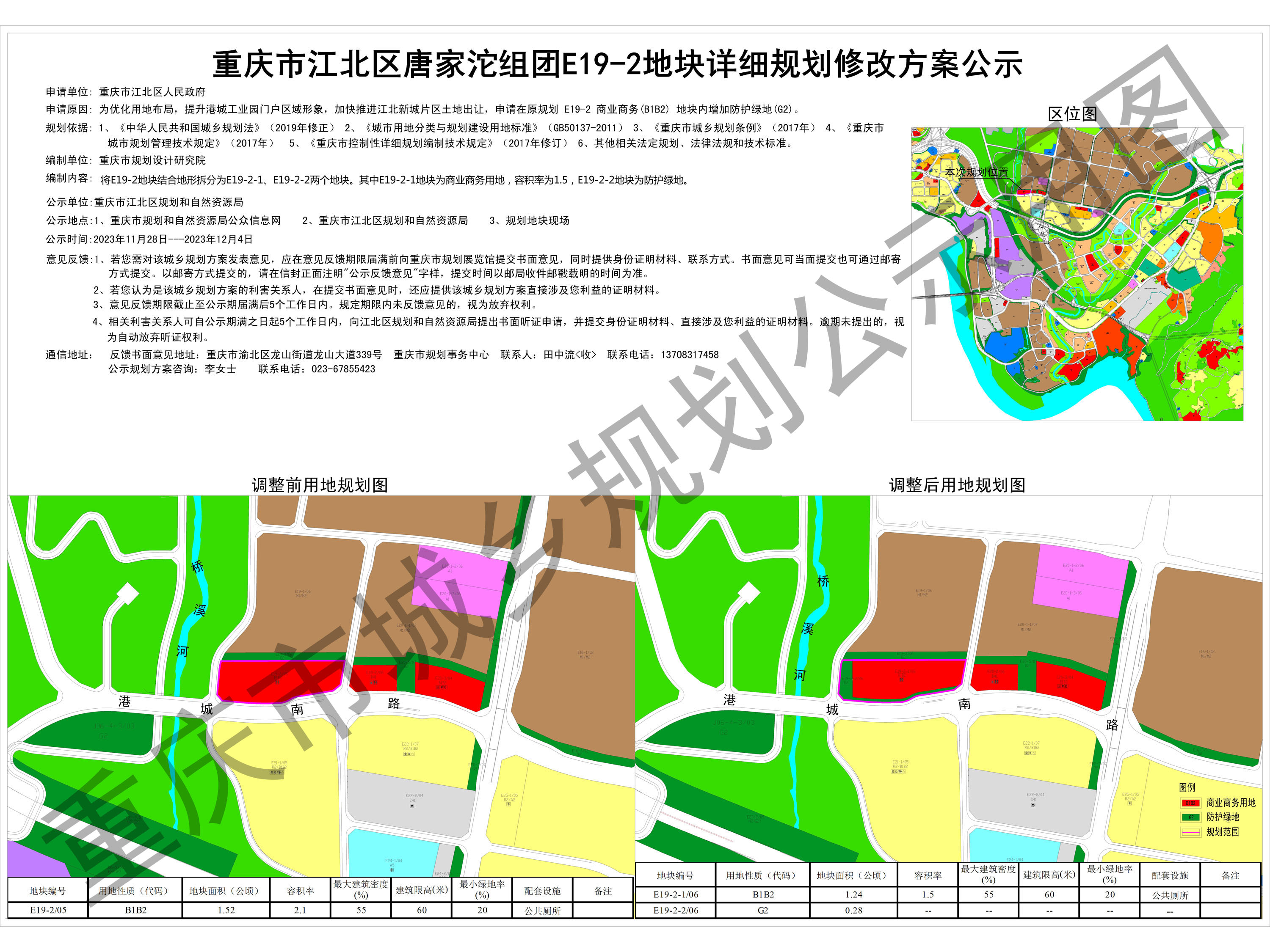 重庆市江北区唐家沱组团E19-2地块详细规划修改方案公示