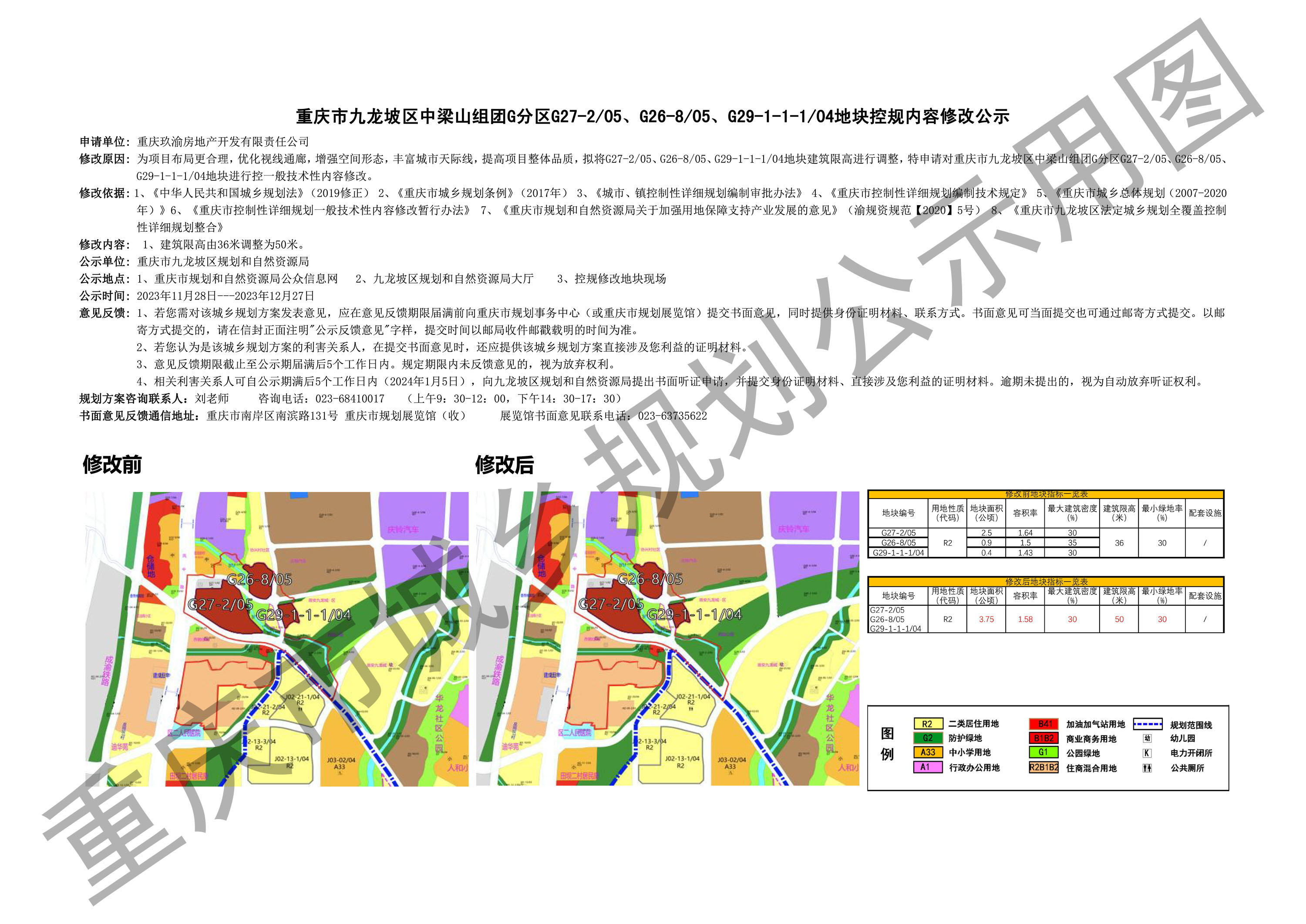 重庆市九龙坡区中梁山组团G分区G27-2/05、G26-8/05、G29-1-1-1/04地块控规内容修改公示