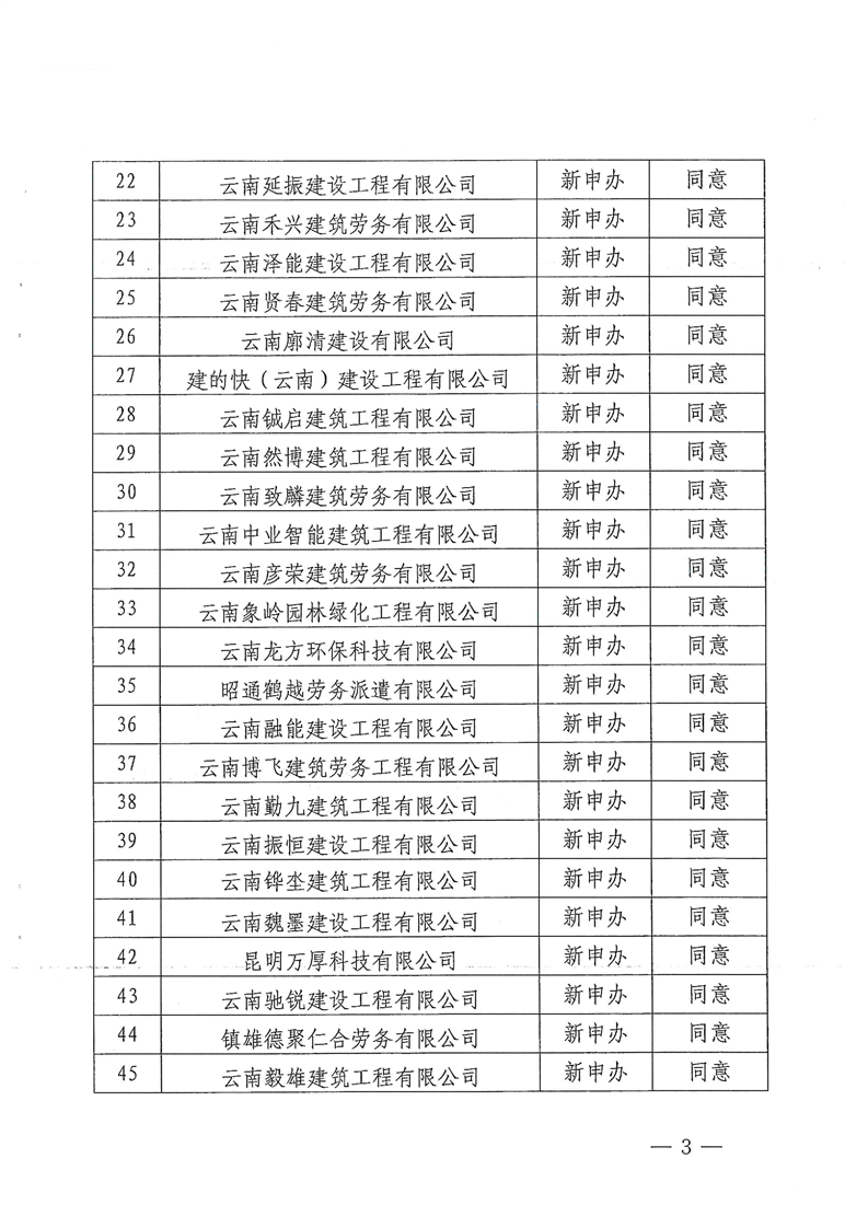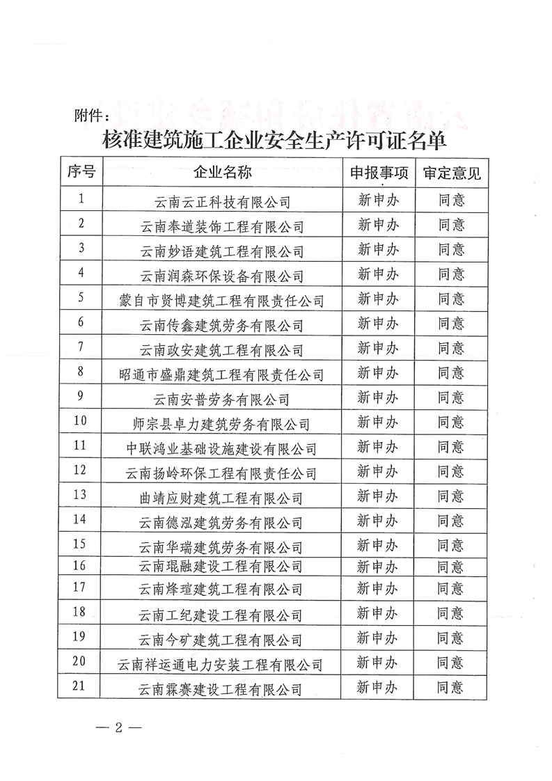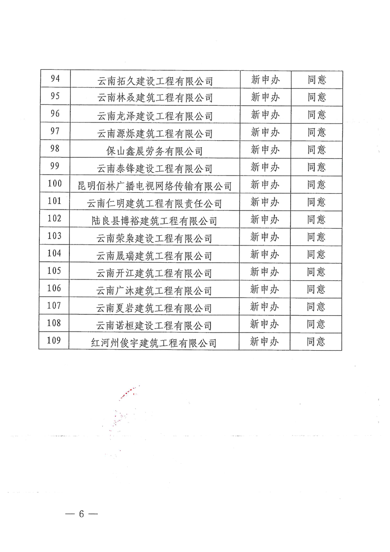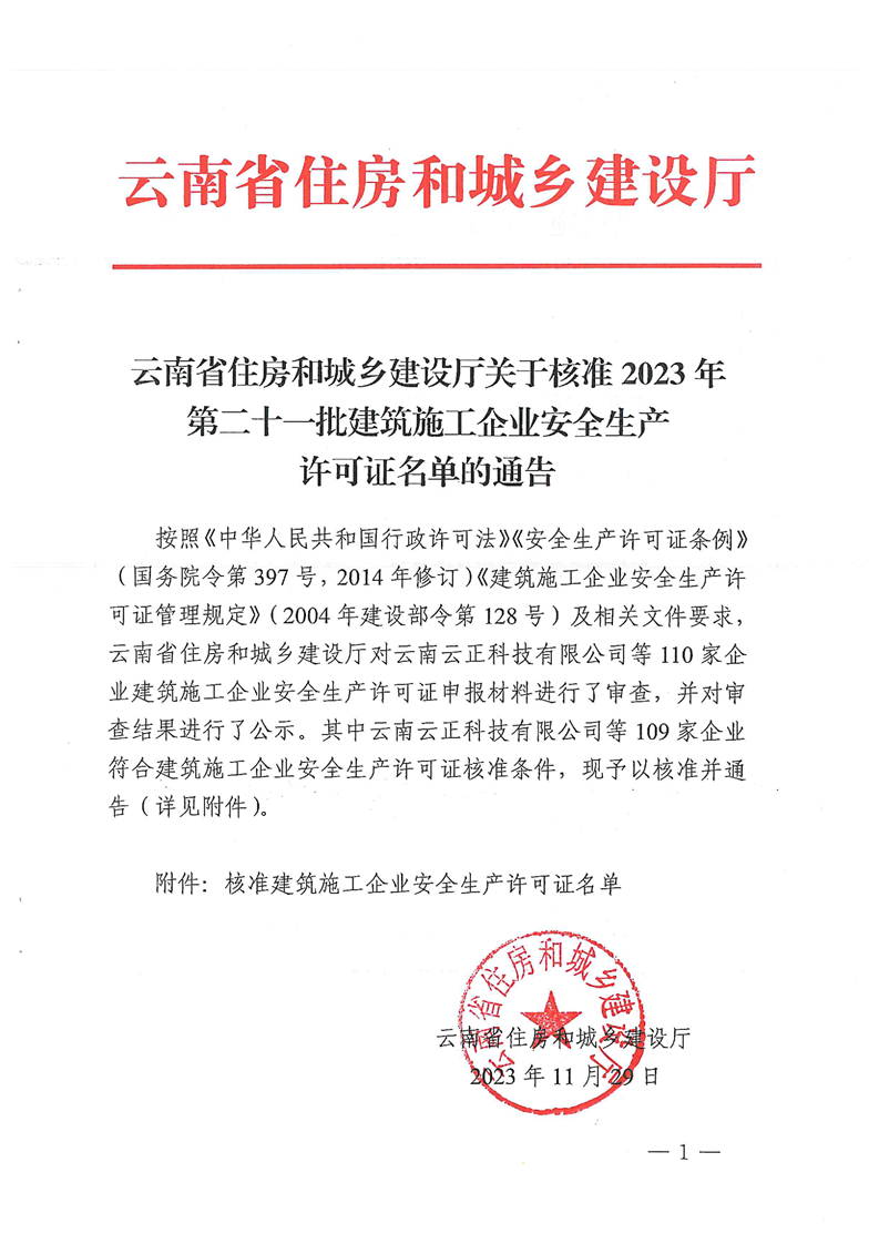 云南省住房和城乡建设厅关于核准2023年第二十一批建筑施工企业安全生产许可证名单的通告